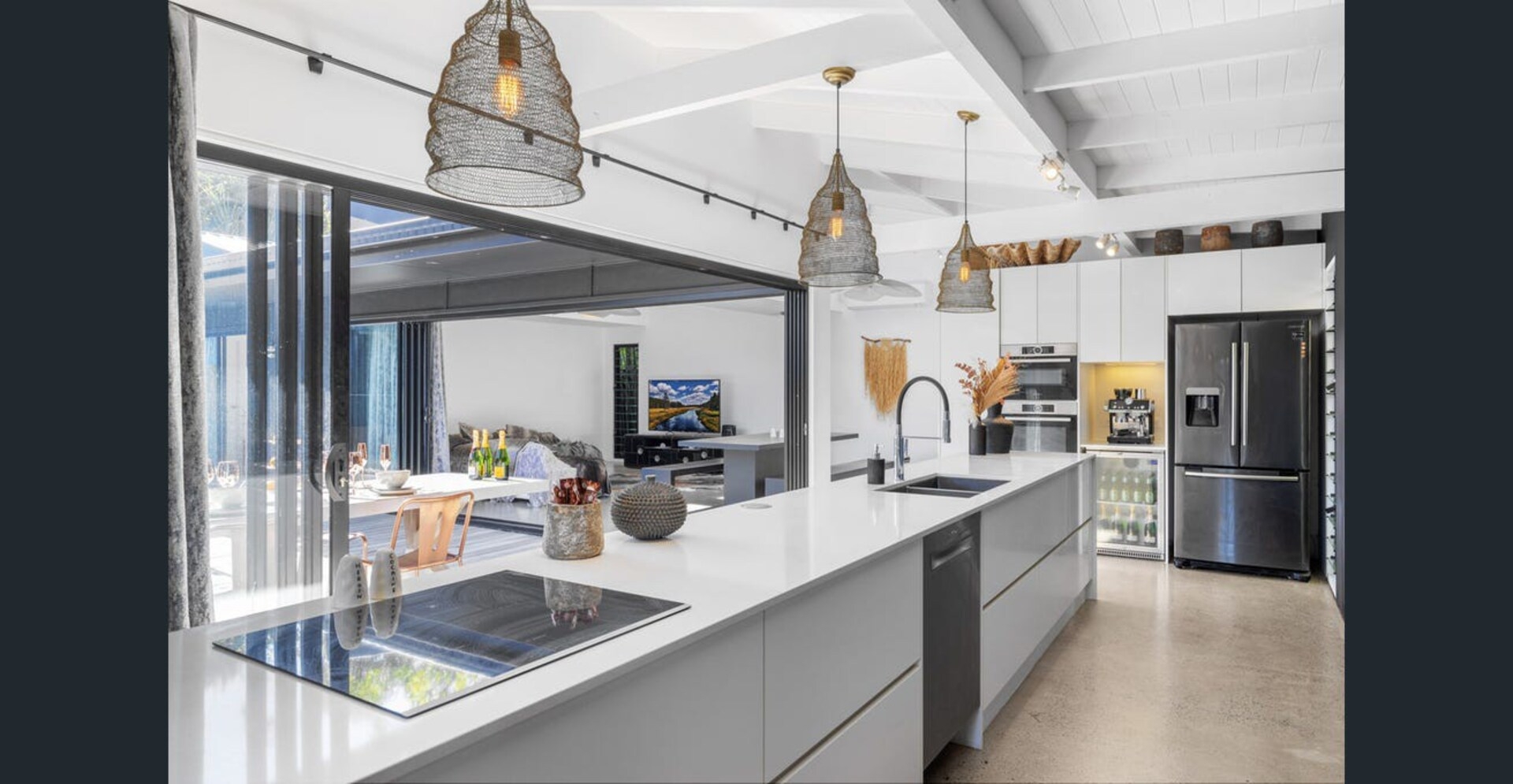 Step into the masterfully appointed primary residence, where a grand master suite awaits, featuring a sumptuous king-sized bed, a spa-like ensuite bathroom, and a sprawling walk-in closet designed to impress. The heart of the home is an airy open-plan living space, where a welcoming fireplace casts a warm glow over the lounge and sophisticated dining area—ideal for cozy nights or lively gatherings. The gourmet kitchen is a chef’s dream, boasting an oversized island that effortlessly flows onto a vast outdoor deck. Here, an expansive alfresco dining area invites you to savor meals beneath the open sky, complemented by the enticing aroma of wood-fired creations from the built-in pizza oven. Relax and unwind beside the outdoor fireplace or take a refreshing dip in the pristine private swimming pool, surrounded by lush landscaping that enhances the tranquil ambiance. Practicality meets luxury with a discreet yet fully equipped laundry area, ensuring convenience without compromising style.